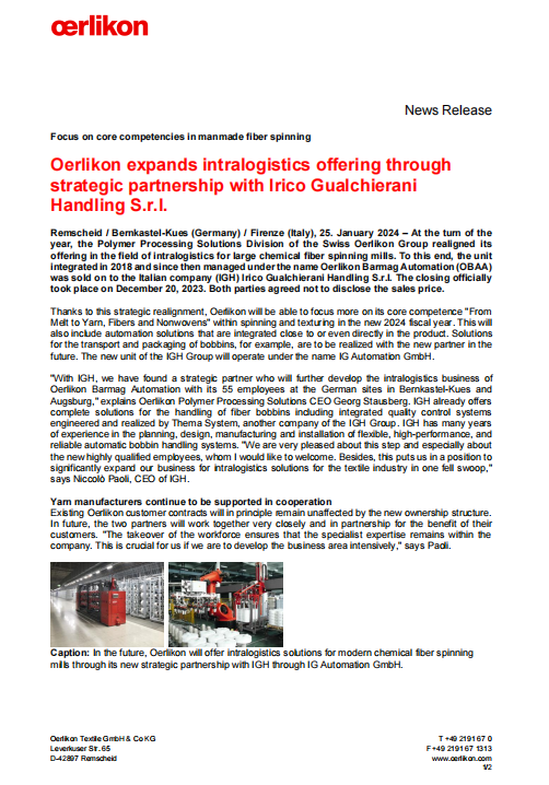 2024年1月,IGH收購巴馬格旗下自動(dòng)化部門